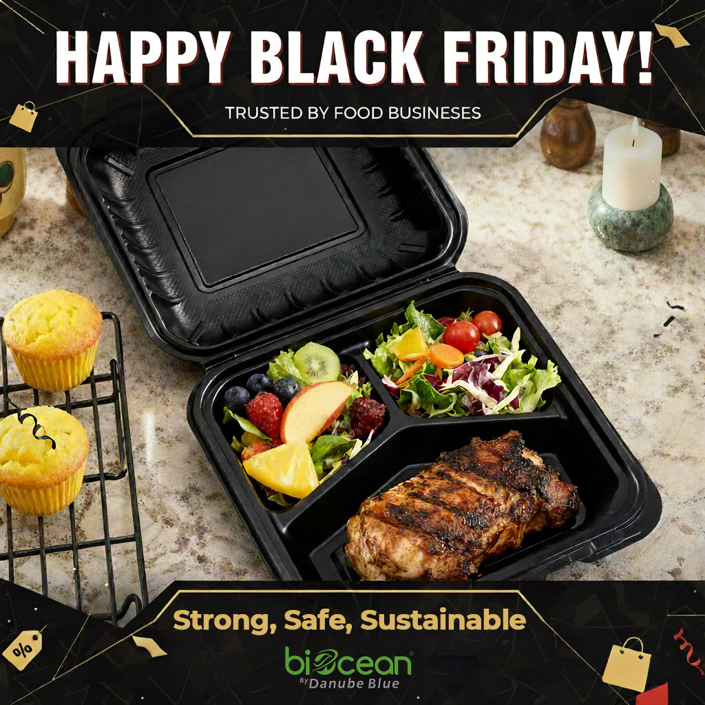 [150ct] 6" x 9" Mineral Filled PP Hinged Containers | Black