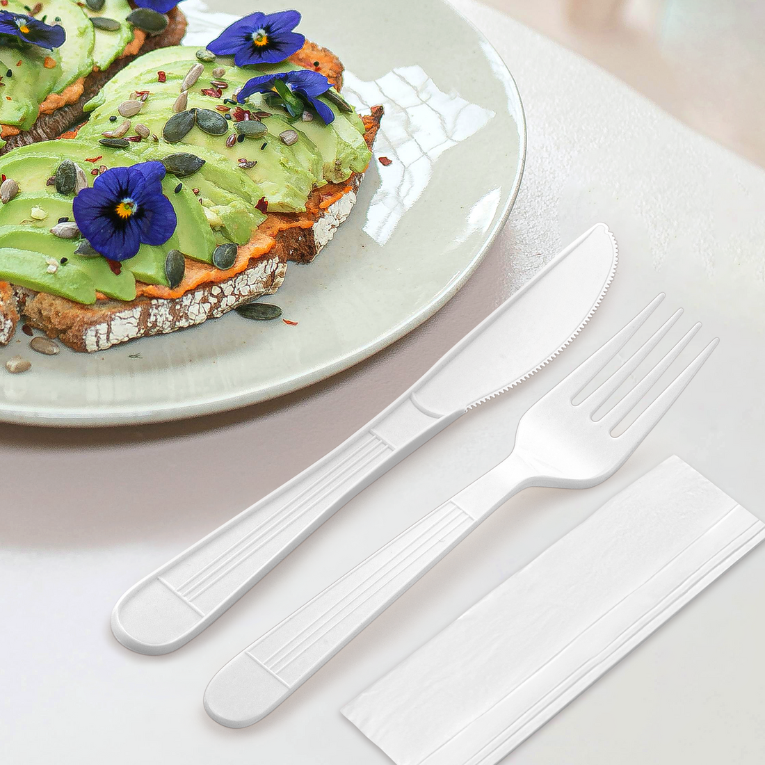 [250ct] PLA Heavy Weight Cutlery Kits (Knife, Fork, Napkin) | White