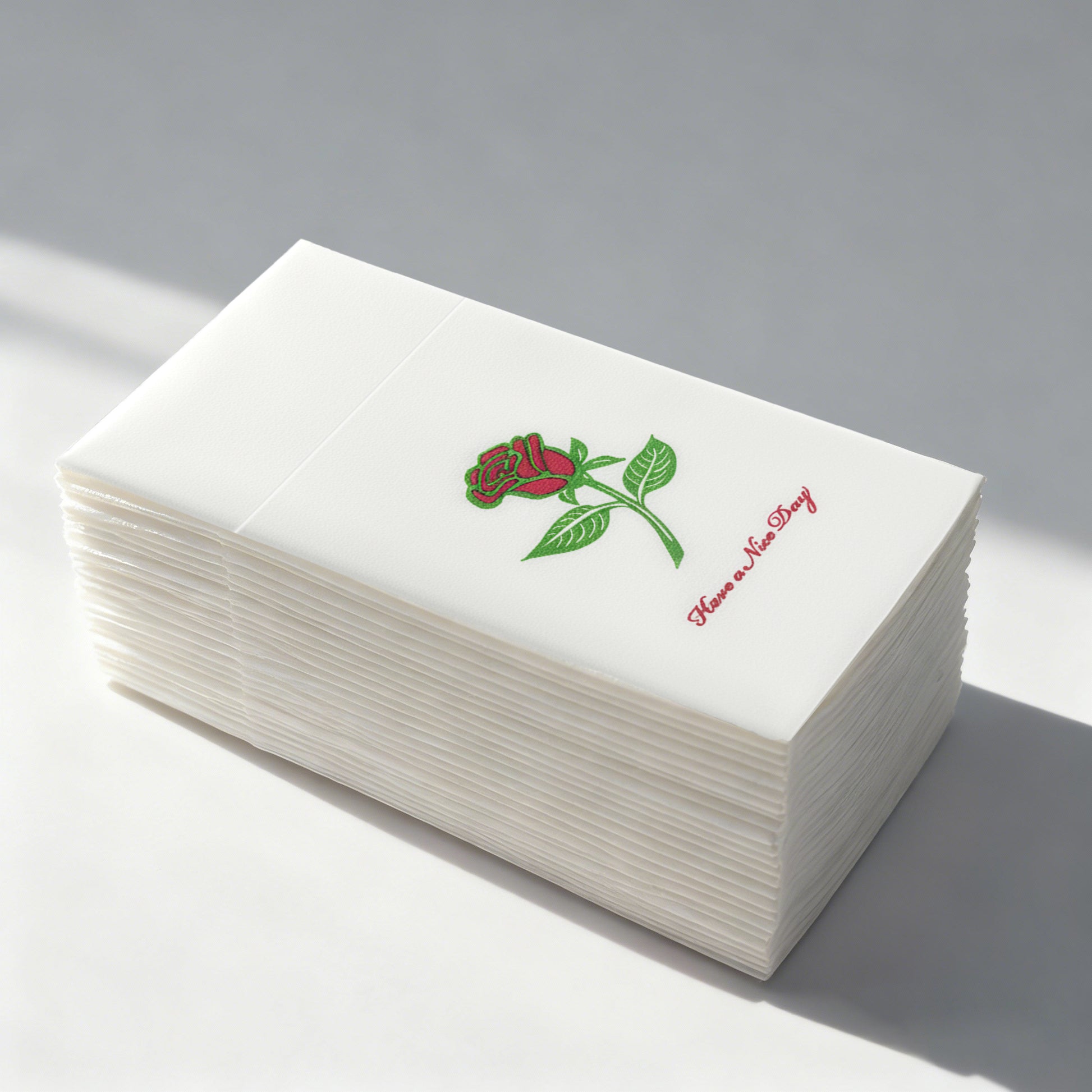 Biocean 15.75" x 17" Rose Pattern Airlaid Paper bring elegance and convenience to any dining setting. Made from premium airlaid paper, they offer a soft, cloth-like texture with excellent absorbency. The napkins feature a beautiful rose design and a practical pocket-fold structure, allowing you to easily insert cutlery for a clean, organized table presentation. Ideal for restaurants, catering, weddings, and upscale events, these 1/8-fold white napkins combine style with functionality, elevating the dining experience.
