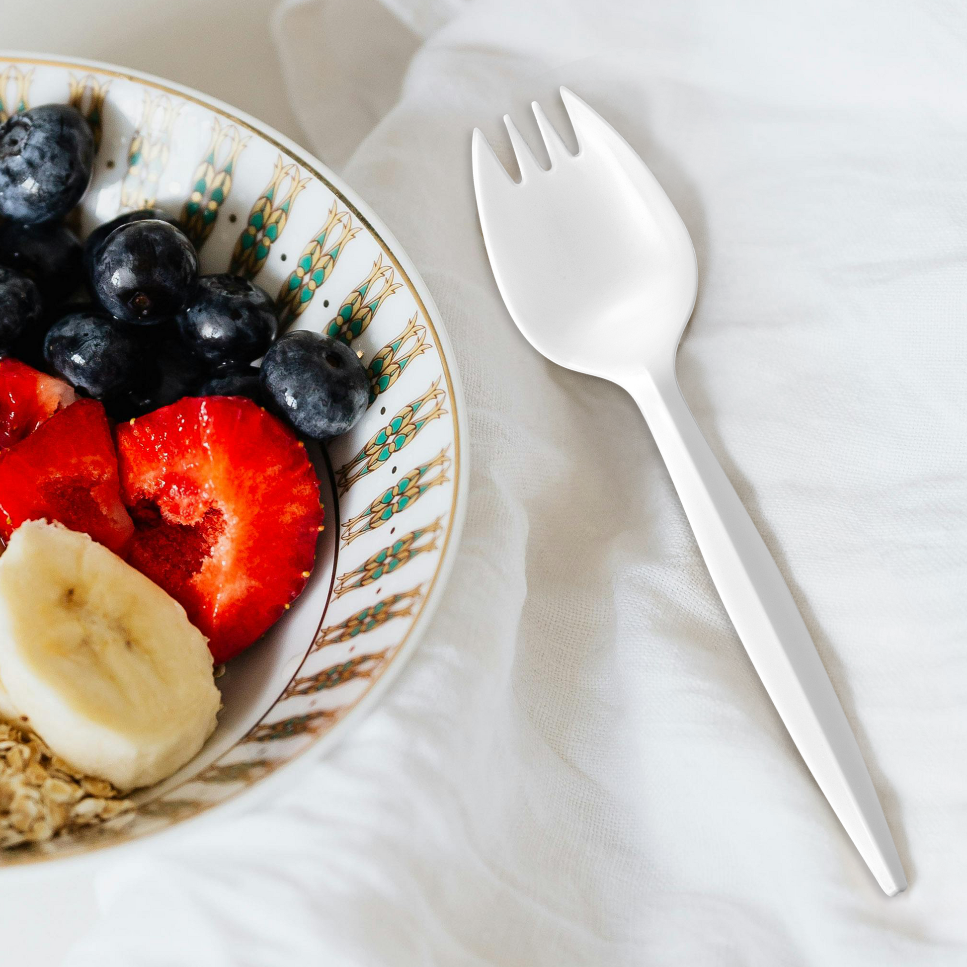Biocean PP Plastic Medium Weight Spork are a practical and durable solution for any food service setting. Made from sturdy polypropylene, they offer a reliable blend of fork and spoon functionality, making them ideal for restaurants, cafeterias, events, and takeout service. The bulk 1,000-count packaging helps reduce restocking time and ensures you’re always ready for high-volume use. With a clean white finish, these sporks pair well with any style of packaging or tableware.