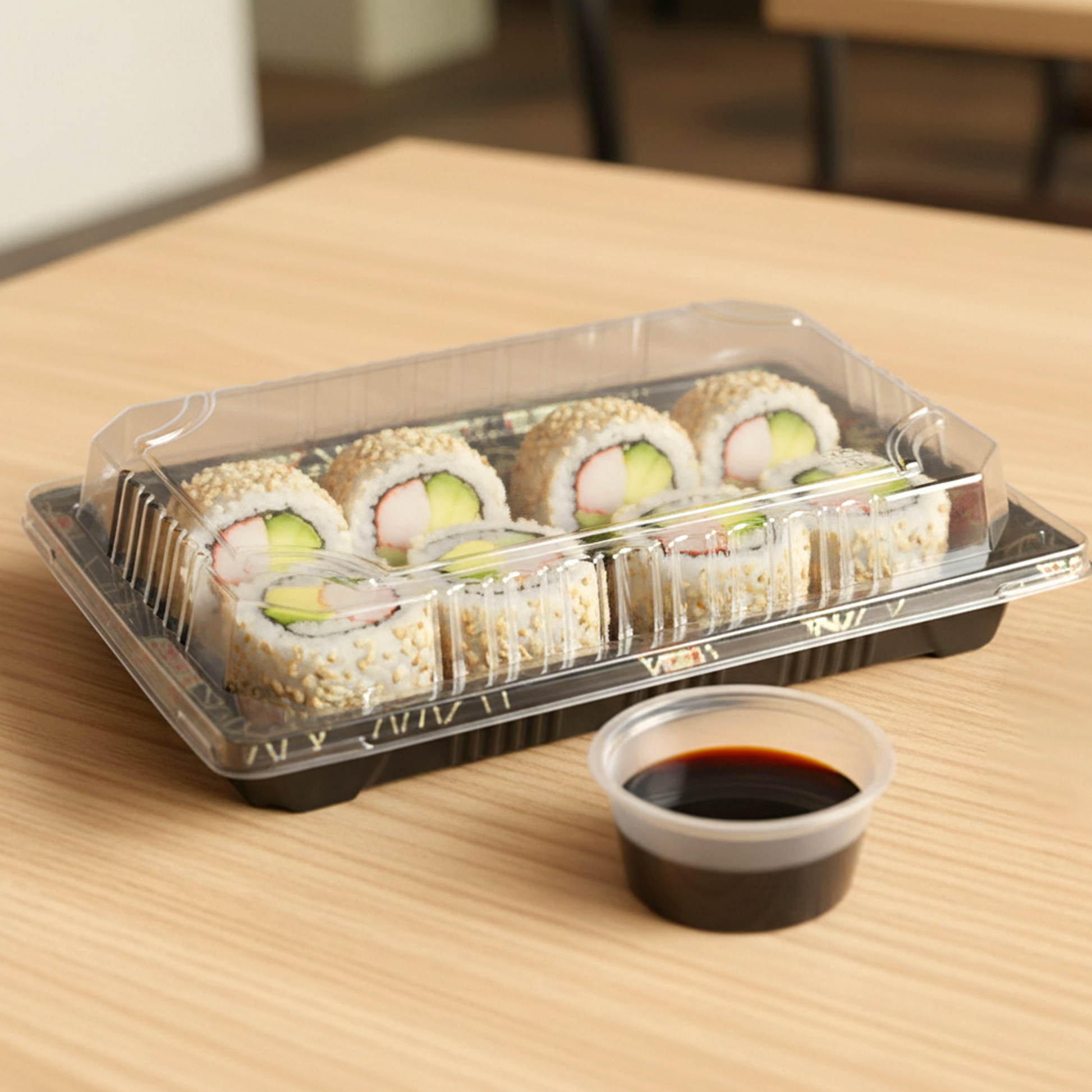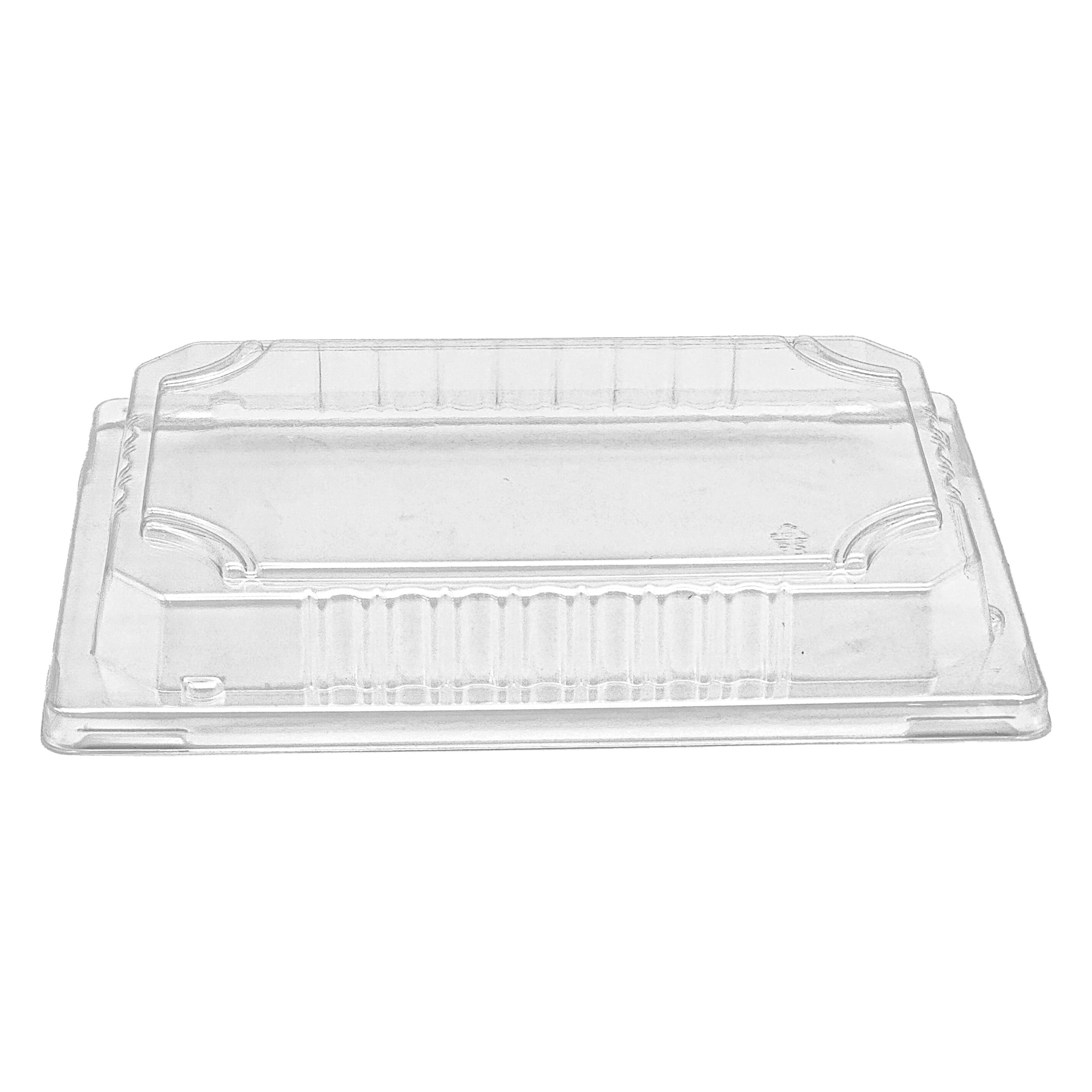 Biocean 7 1/2" x 5 3/10" Sushi Tray Lid for clean food presentation in takeout or supermarket displays. Designed to match the same-size tray for hygienic, tight sealing.