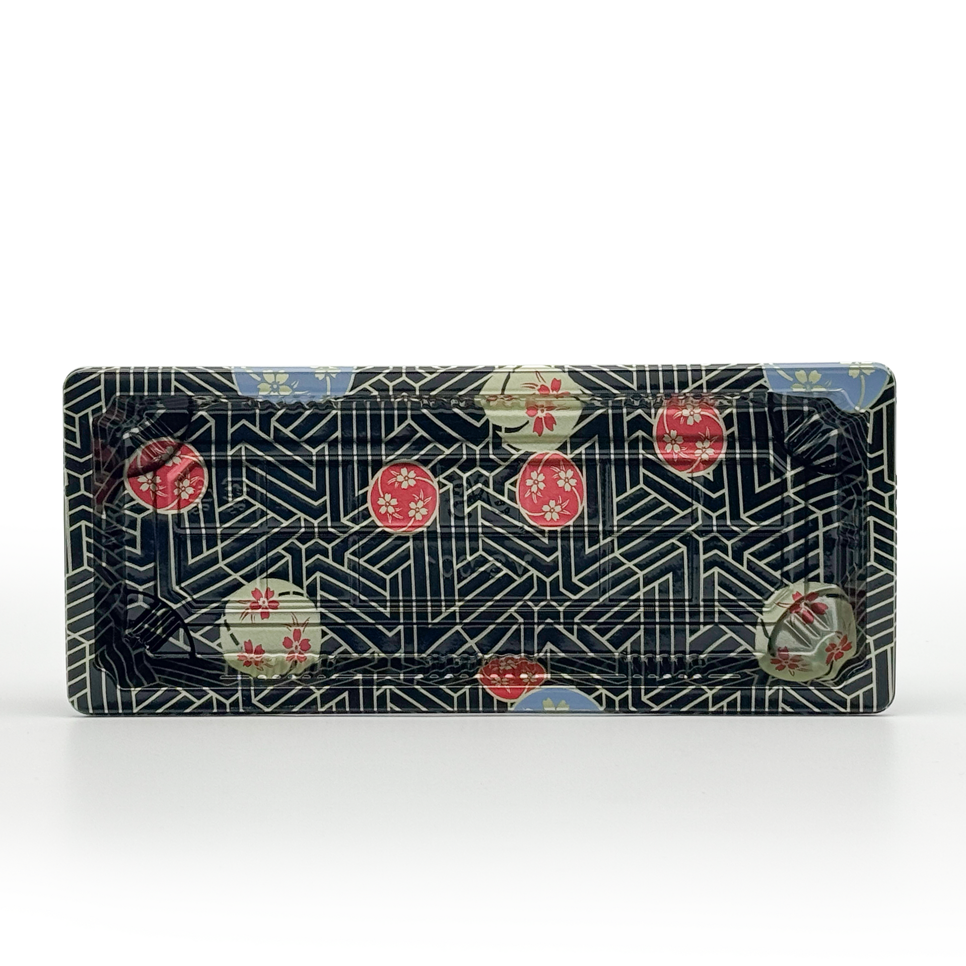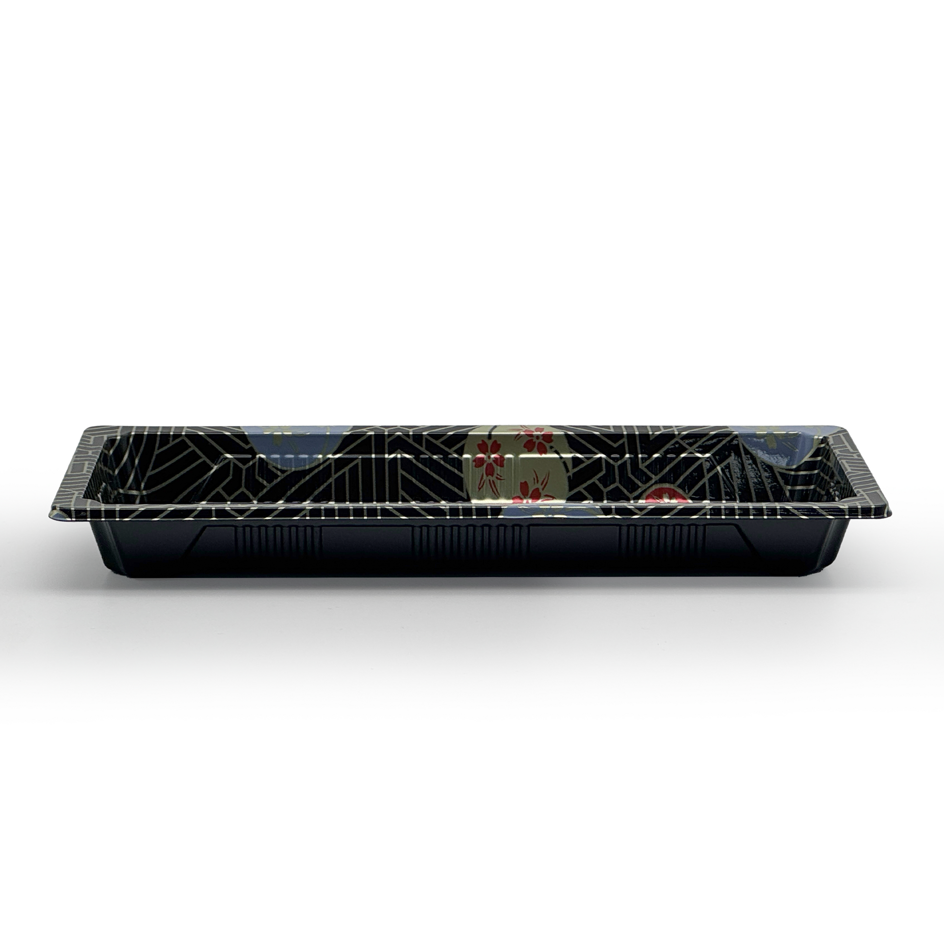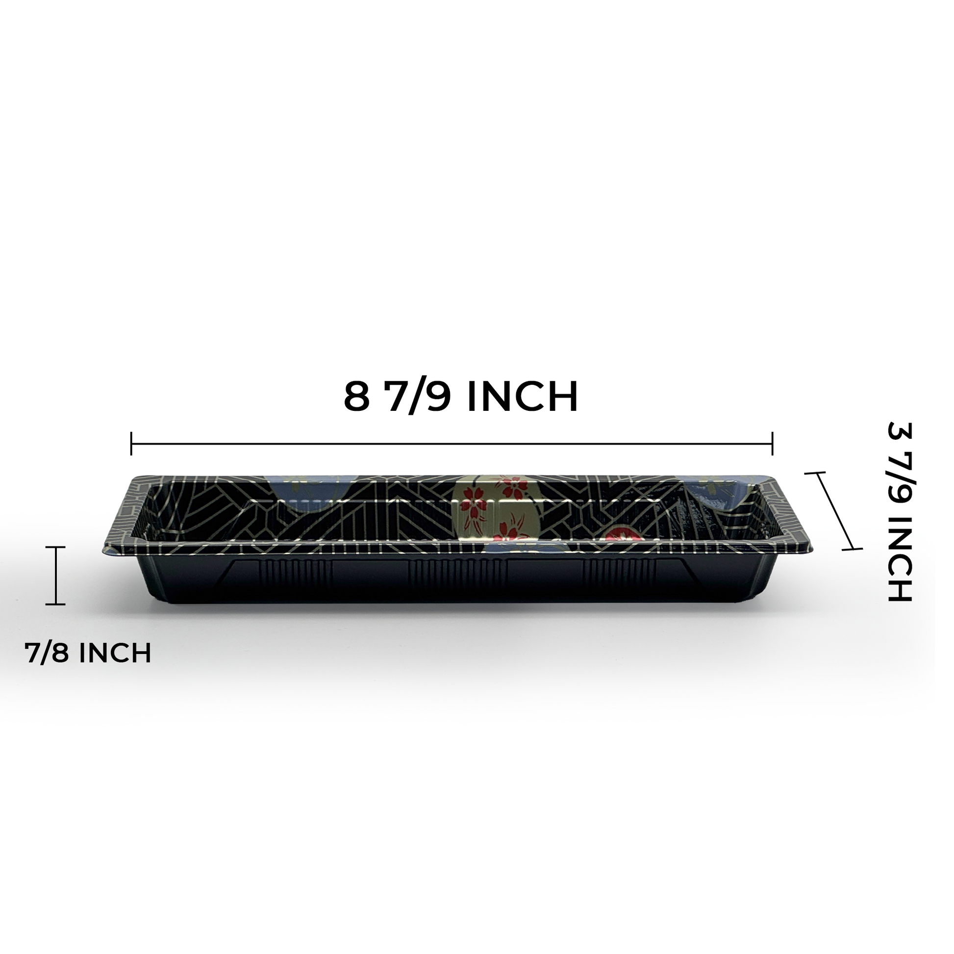 [1,400ct] PS Plastic 8 7/9" x 3 7/9" Sushi Tray Base with Lid | Black