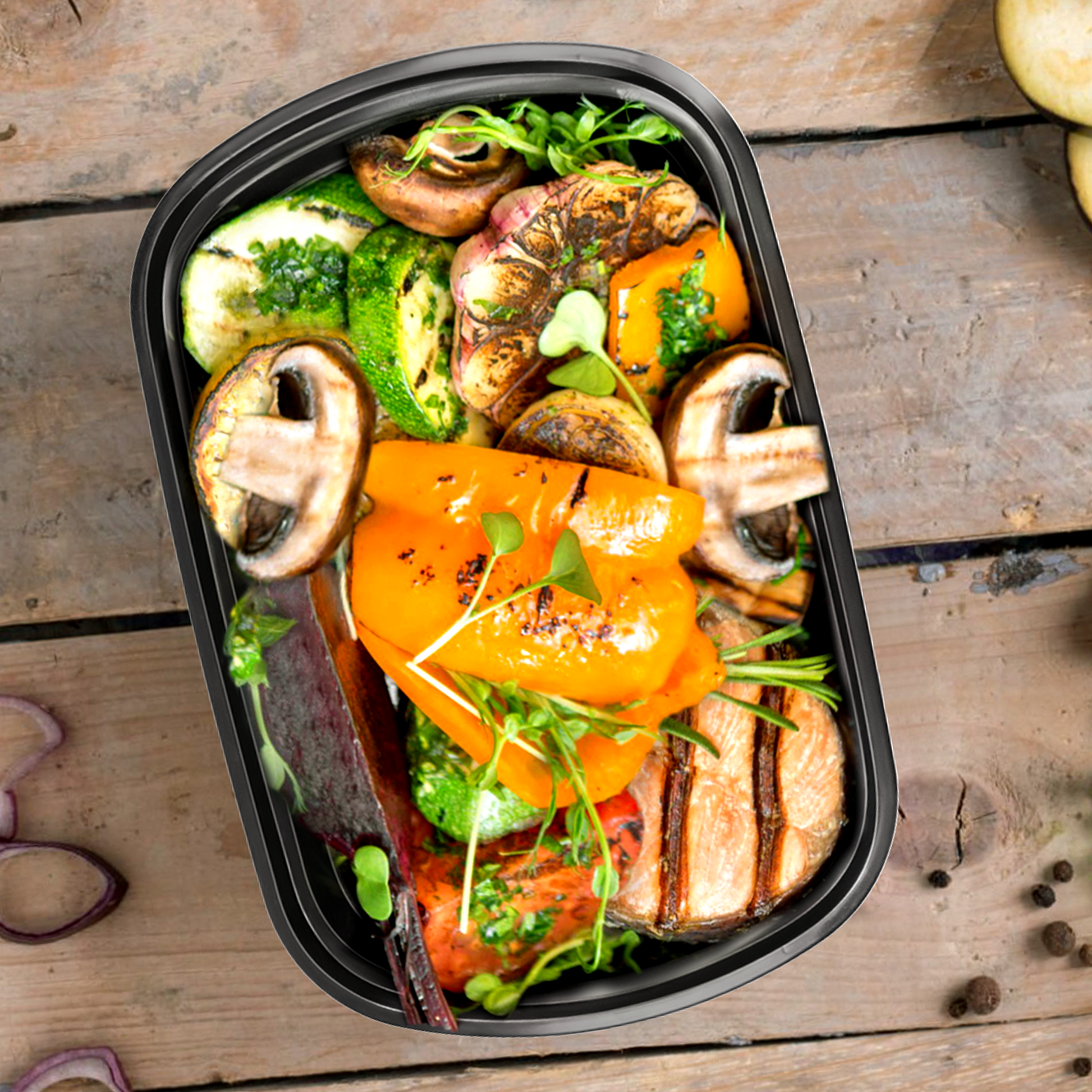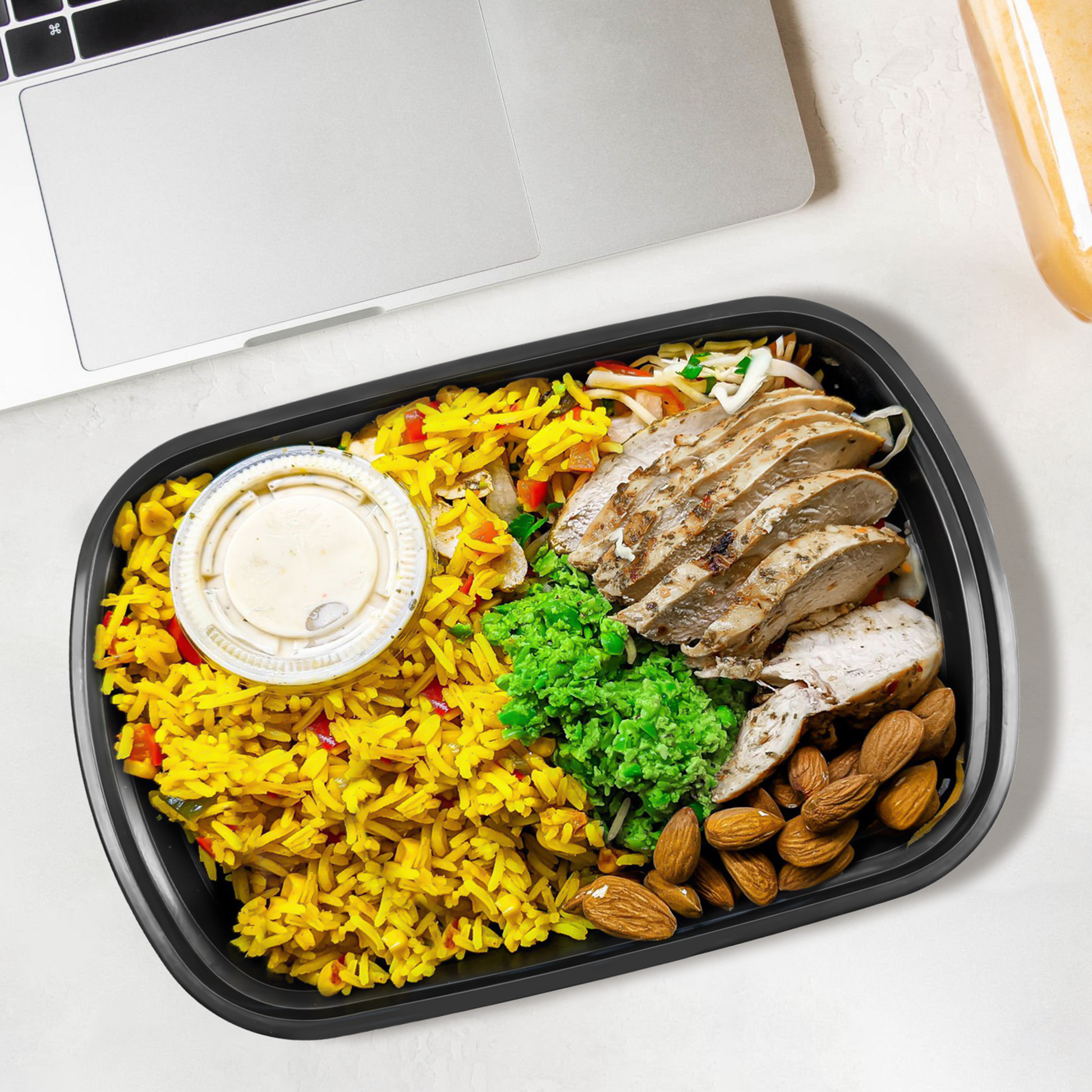 [150ct] 28oz PP Plastic Microwavable Rectangular Food Containers & Lids | Black