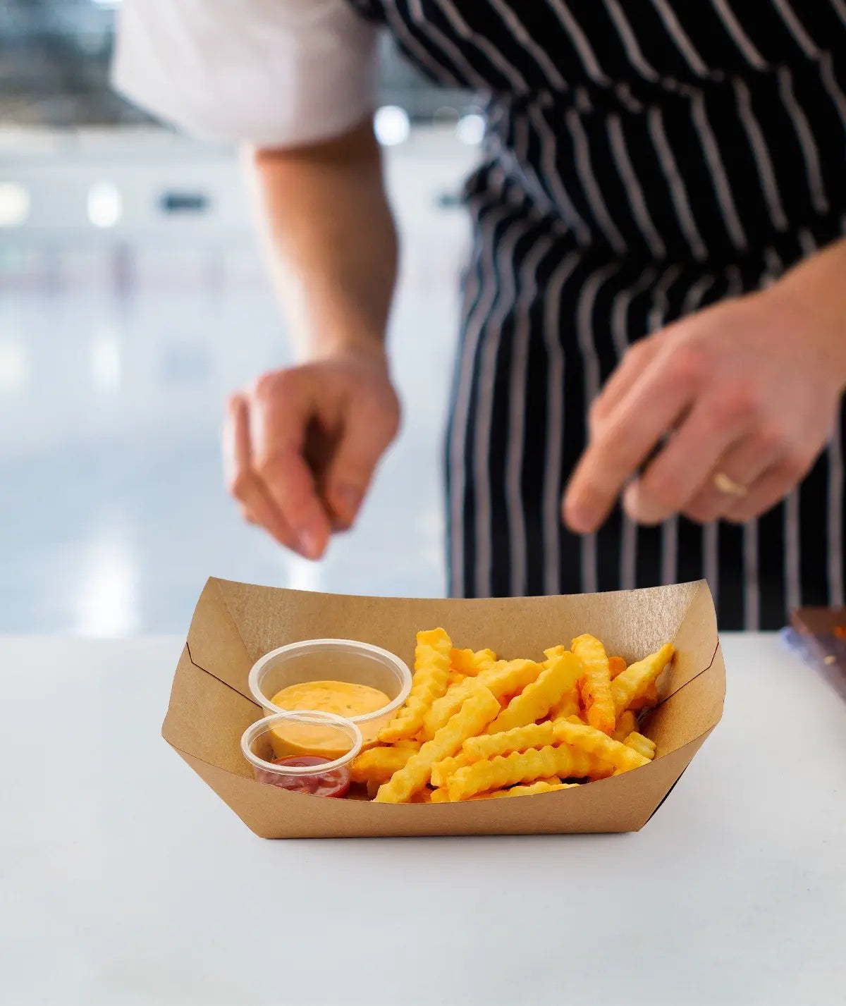 Biocean Kraft Paper Food Trays are made from eco-friendly, compostable kraft paper and are durable and sturdy. Available in multiple sizes, they easily accommodate single meals, snacks, or hearty combo dishes. Foldable design saves storage and transport space. The natural kraft paper finish is simple and stylish, perfect for restaurants, takeout, parties, or office use—combining practicality with sustainability.