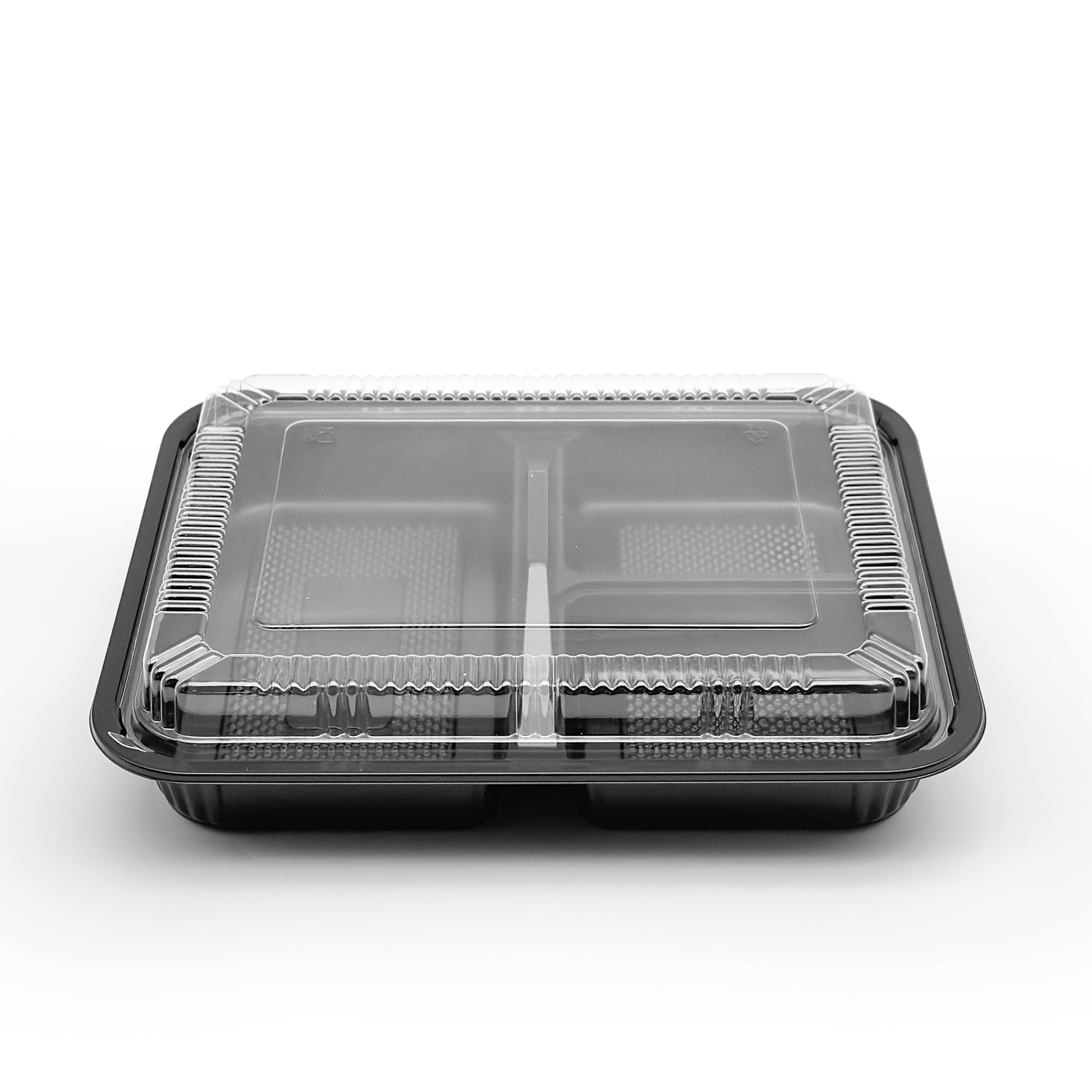 [252ct] PS Plastic 9 2/5" x 7 1/2" Bento Box with lid | 3-compartment | Black