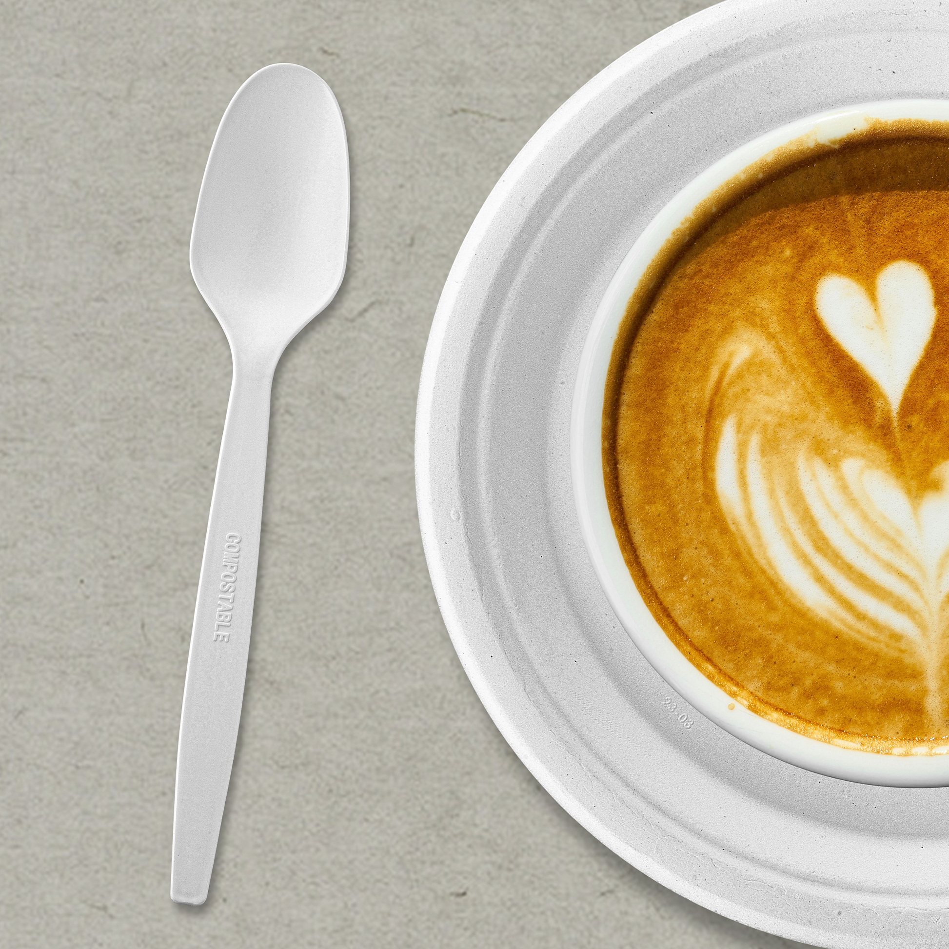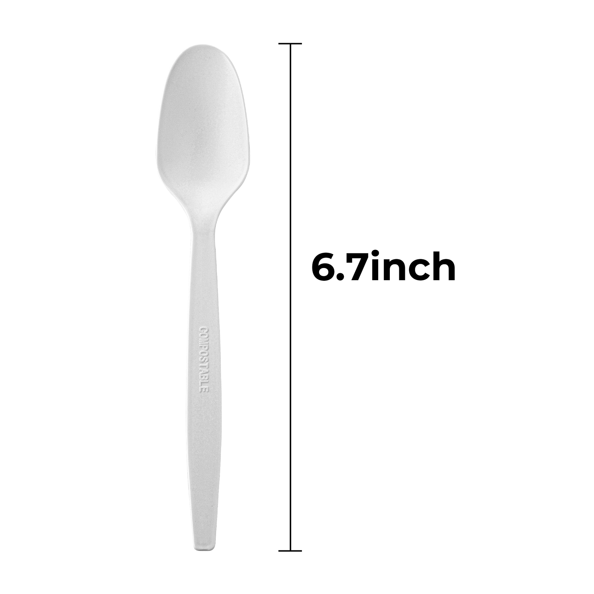 [500ct] PLA Heavy Weight Tea Spoons with a Free Eco Bag | White