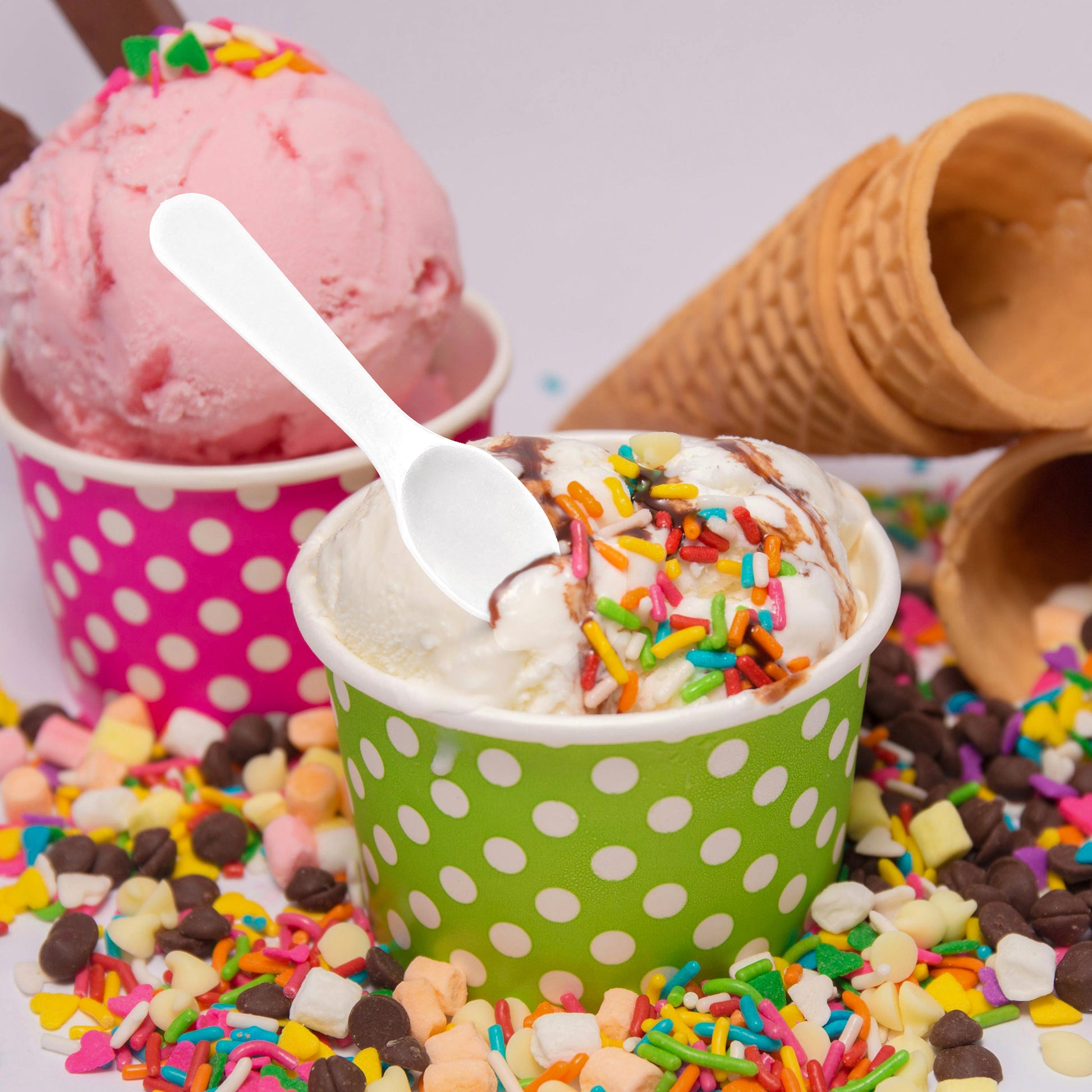 Biocean PS Plastic Tasting Spoons crafted from sturdy PS plastic,offer a clean and professional look for sampling gelato, ice cream, yogurt, and desserts. Compact and hygienic, they are perfect for restaurants, bakeries, and catering events.