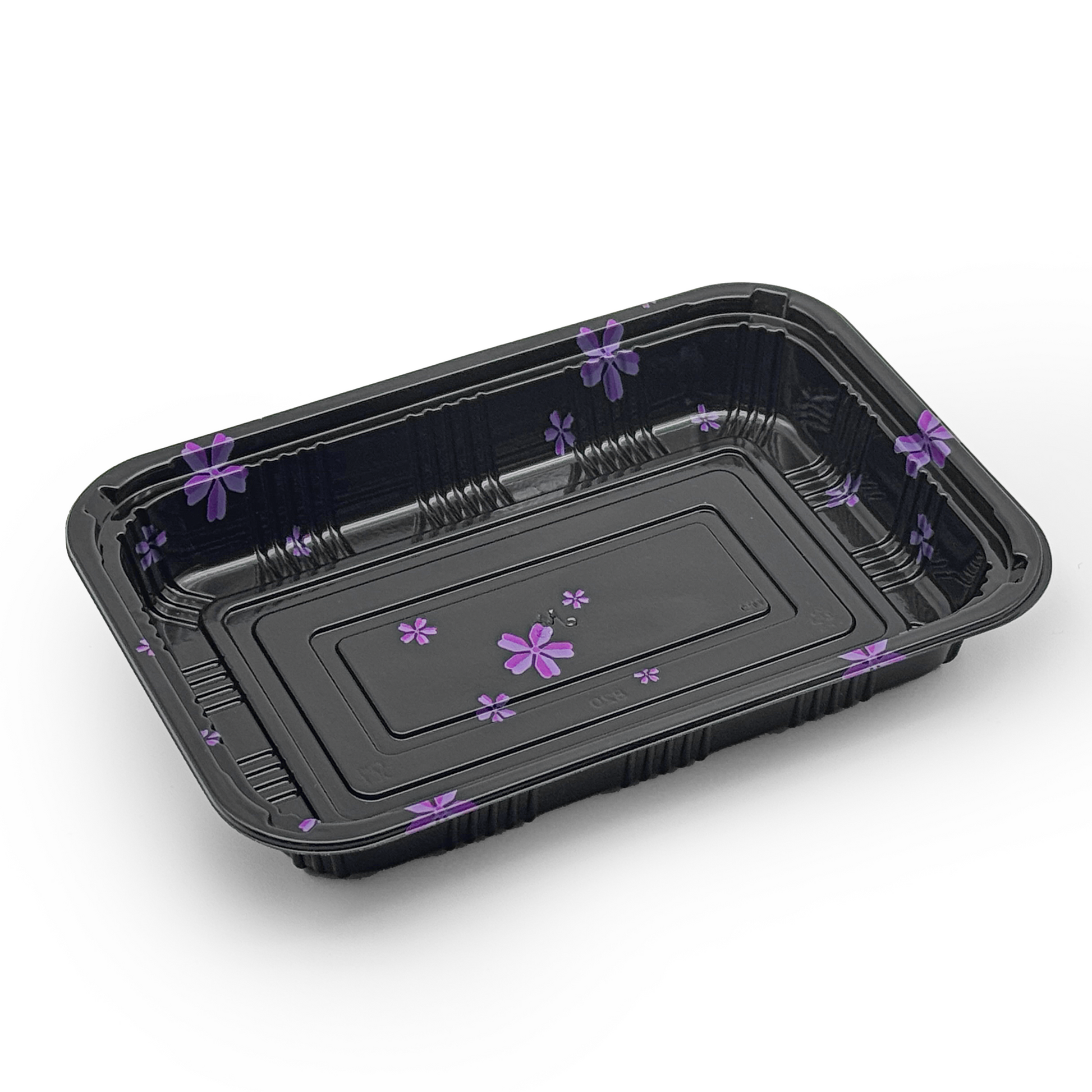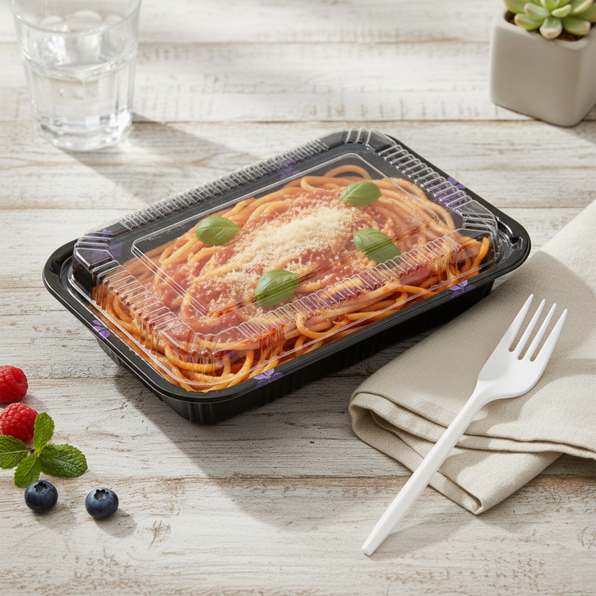 Biocean PS Plastic Rectangular Food Containers & Lids accommodate fruit mixes, pastry sets, salads, and chilled entrées. The rigid floral base and clear lid protect presentation during transport and allow clear visibility for merchandising in grab-and-go coolers.