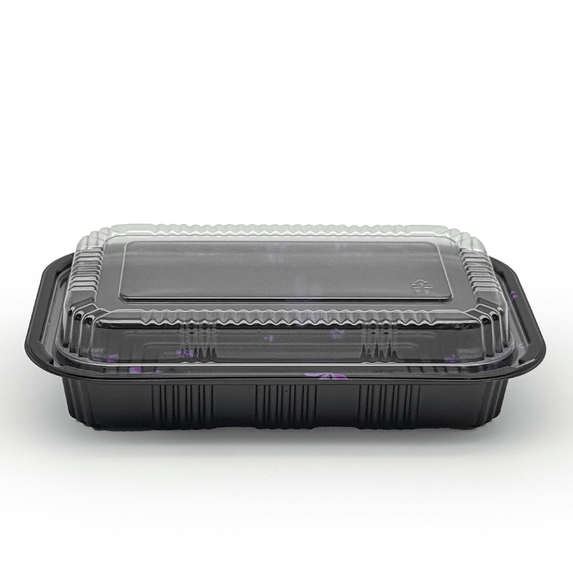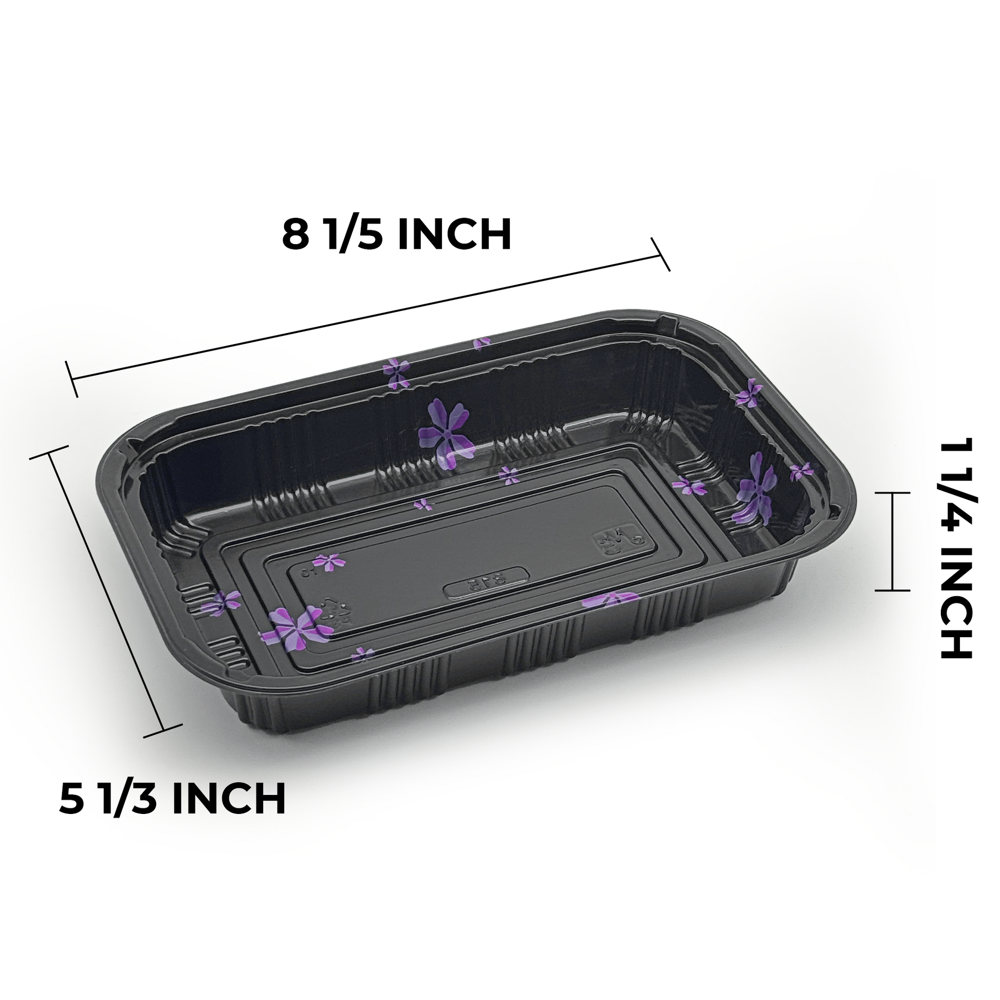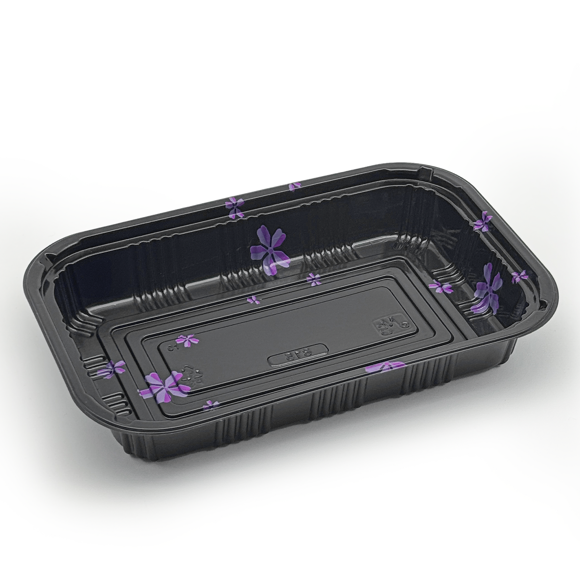 Biocean PS Plastic Rectangular Food Containers & Lids are suitable for bakeries, sushi, and chilled meals. The floral-printed black base provides a clean and elegant look, while the transparent cover displays food clearly on retail shelves or refrigerated counters.