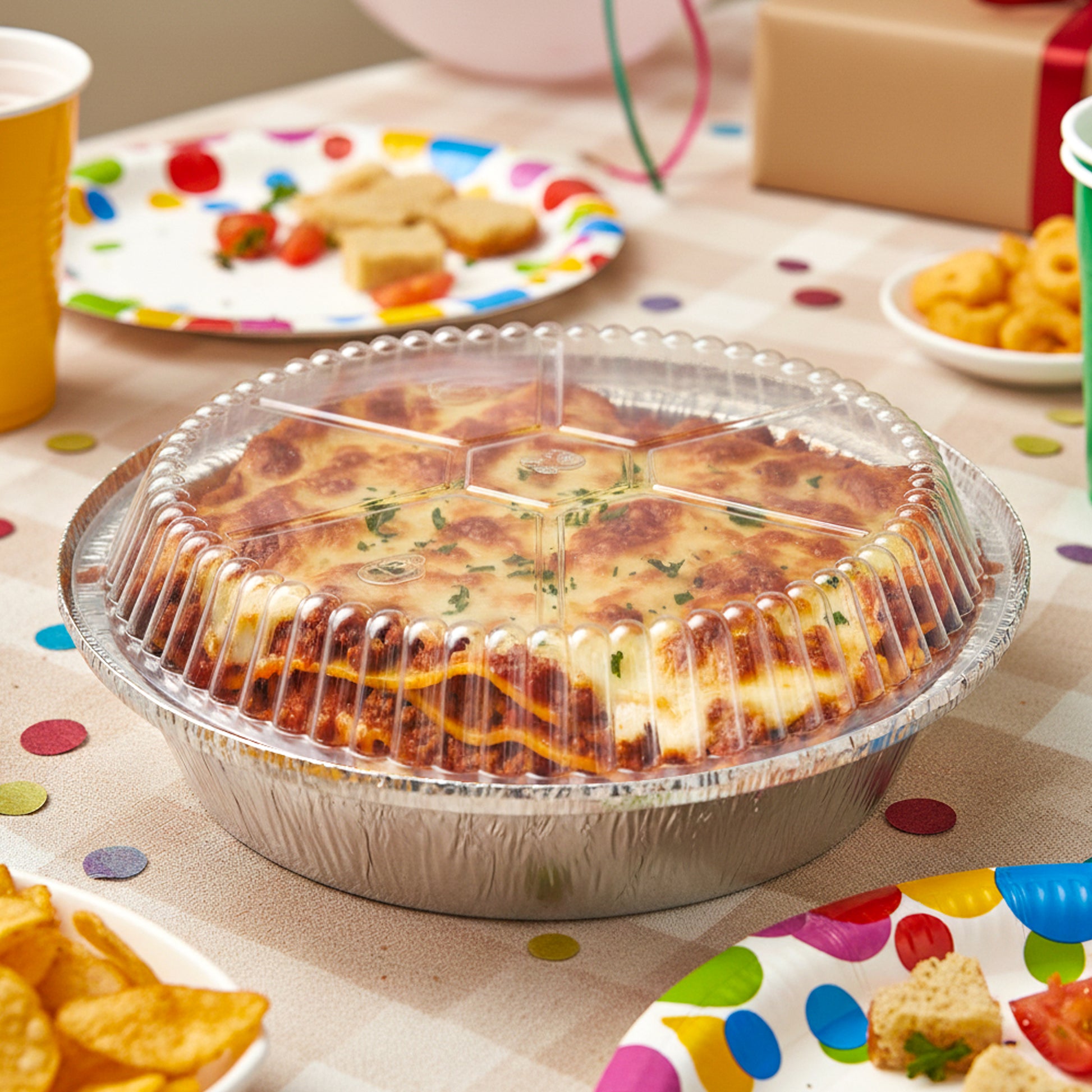 Biocean 7" Round Plastic Dome Lid are designed to fit standard 7" foil pans, providing clear visibility and secure coverage for baked goods, take-out meals, and food storage. The raised dome shape prevents crushing and offers extra space for toppings or taller items. Ideal for bakeries, restaurants, catering services, and home meal prep. Packaged in a bulk set of 500 for efficient, high-volume use.