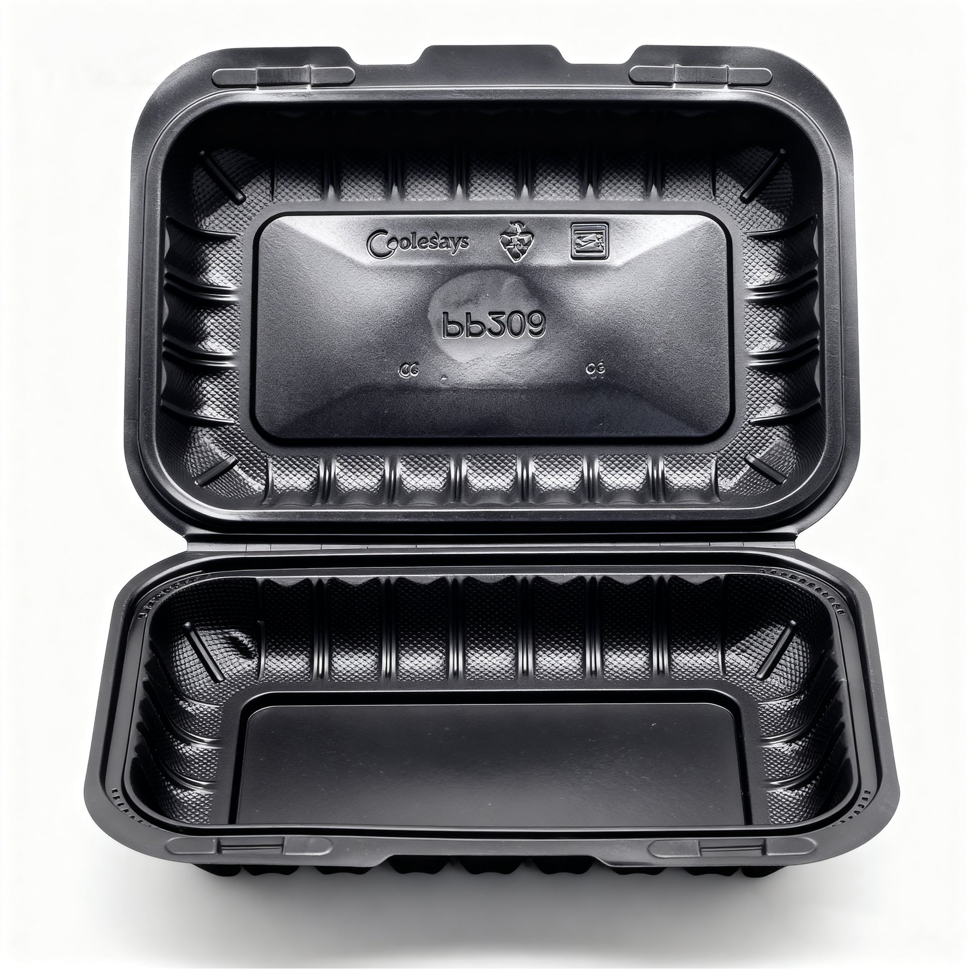 Biocean Mineral Filled Black PP Hinged Container designed to hold burgers, sandwiches, and hot foods without squashing. Made from durable white polypropylene, it is safe, eco-friendly, and resistant to oil and moisture, perfect for dine-in or takeout. The hinged design allows easy opening and handling, ideal for restaurants, cafes, food trucks, and other foodservice operations. Each case offers a practical and cost-effective packaging solution, helping busy kitchens operate efficiently while keeping food fresh and presentable.