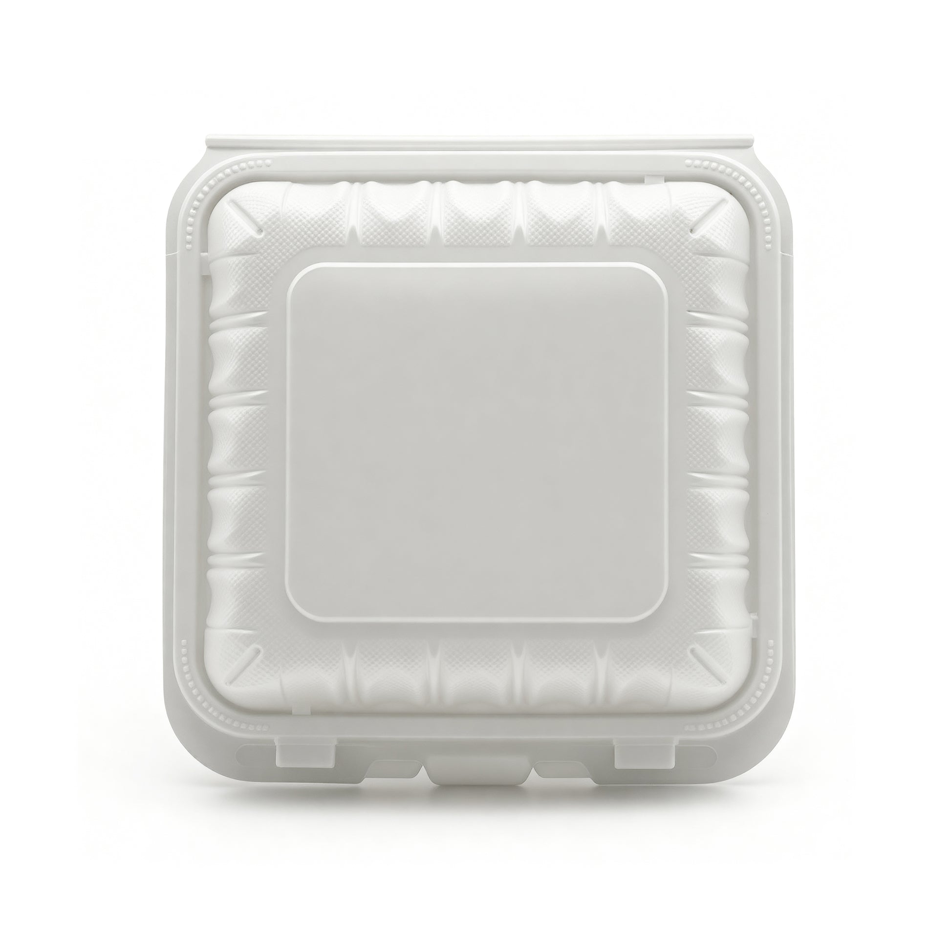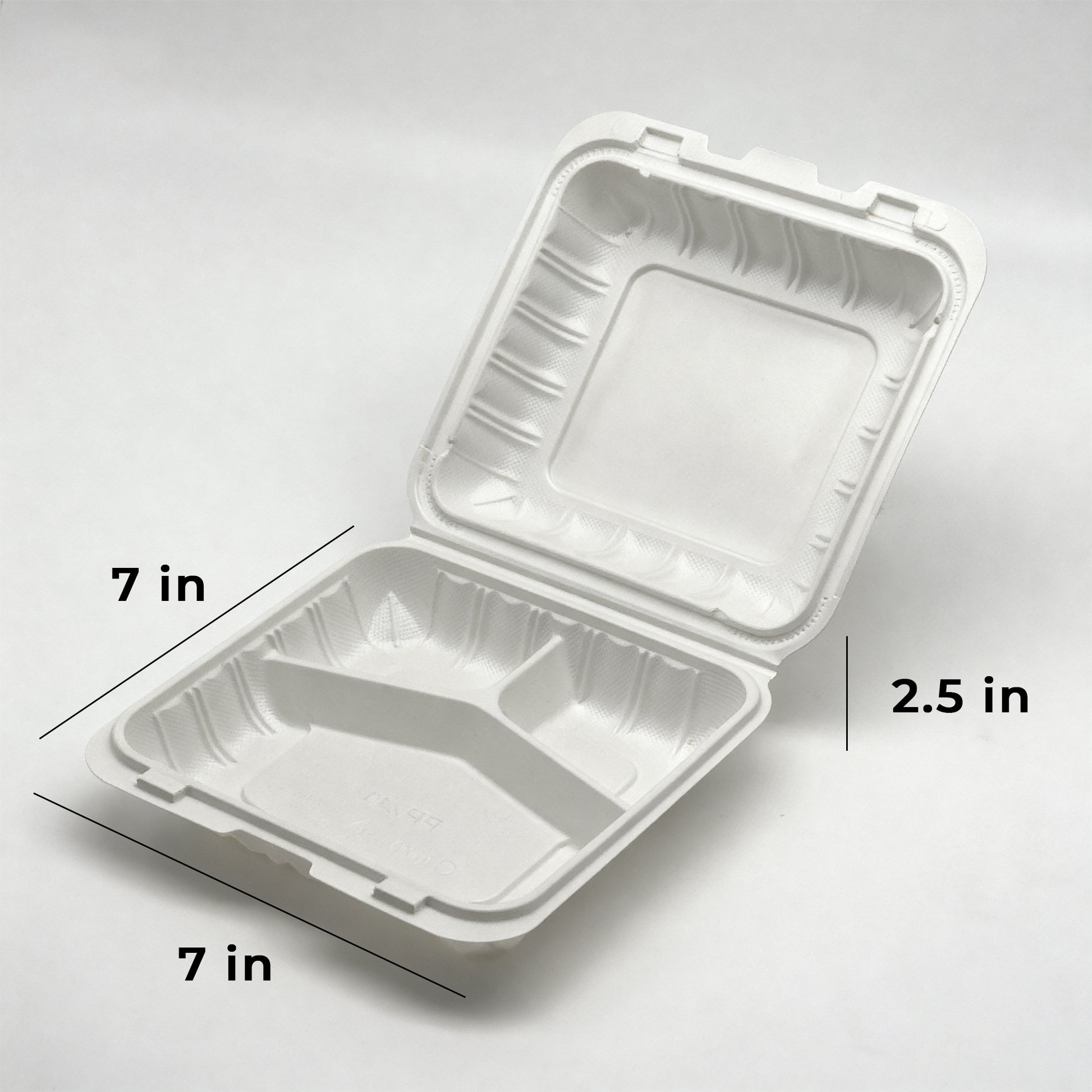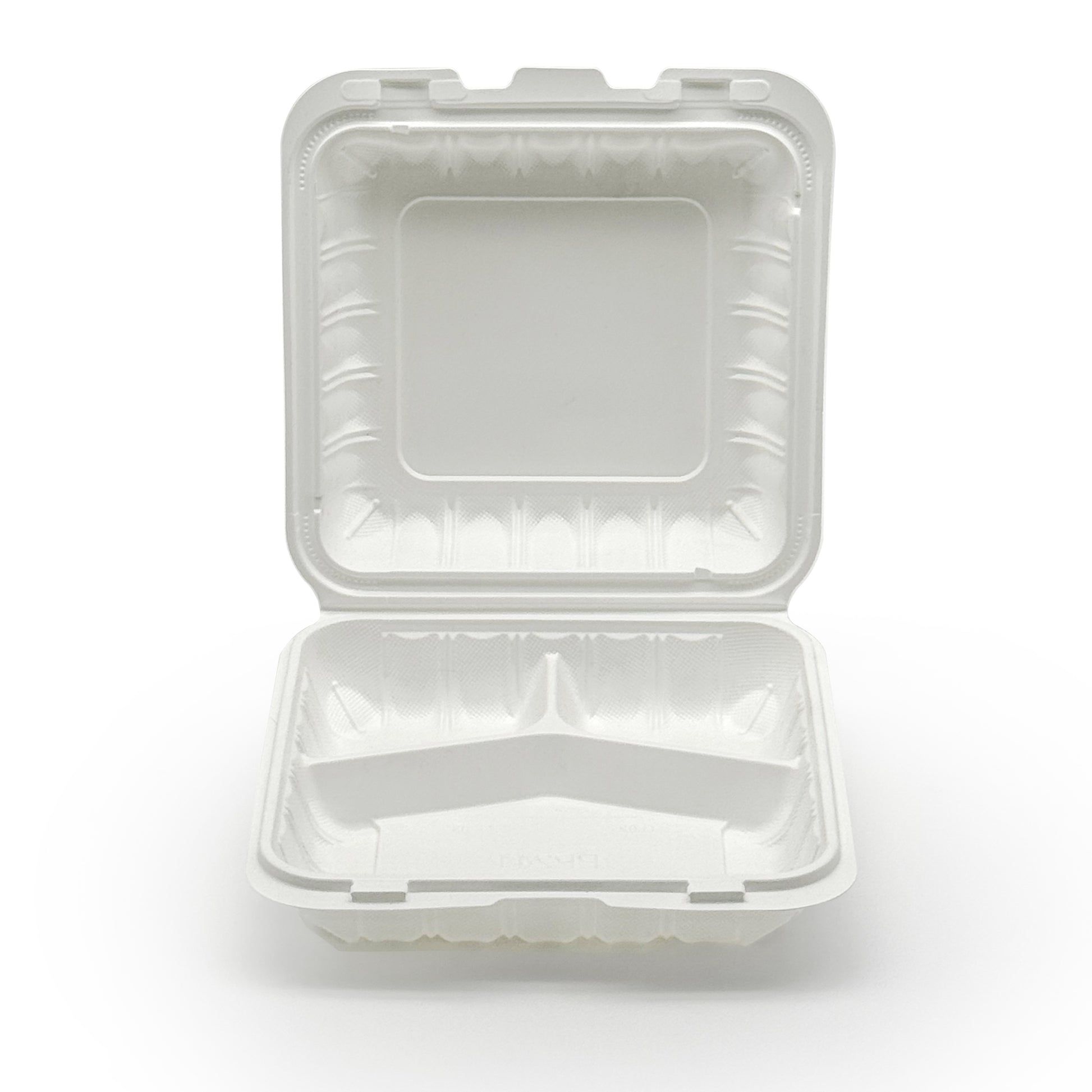 [150ct] 7" x 7" Mineral Filled PP Hinged Containers | 3-Compartment | White