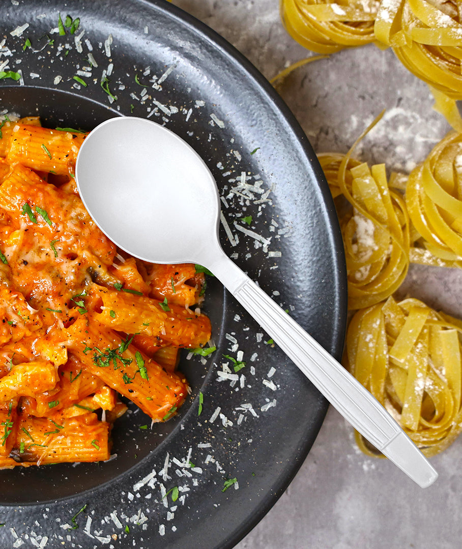 Biocean Extra Heavy Weight White PP Soup Spoons Bulk Box made from premium polypropylene,offering a superior, substantial feel that prevents bending or warping, even with thick soups and hearty stews.The bulk box packaging provides great value and convenience, making them the ideal choice for restaurants, cafeterias, catering companies.