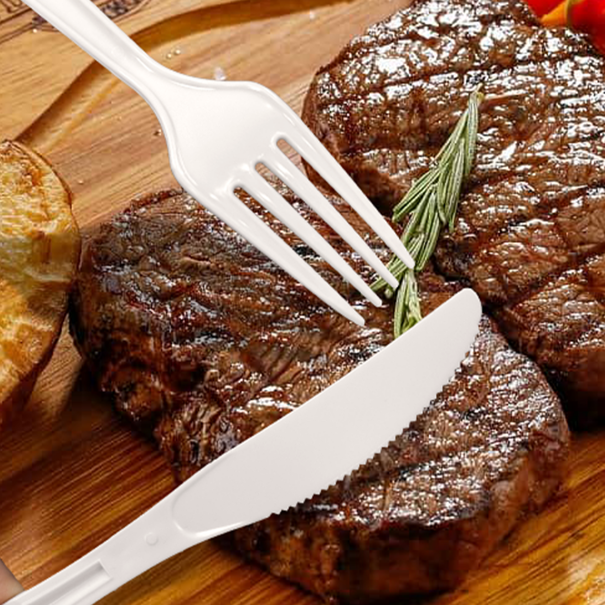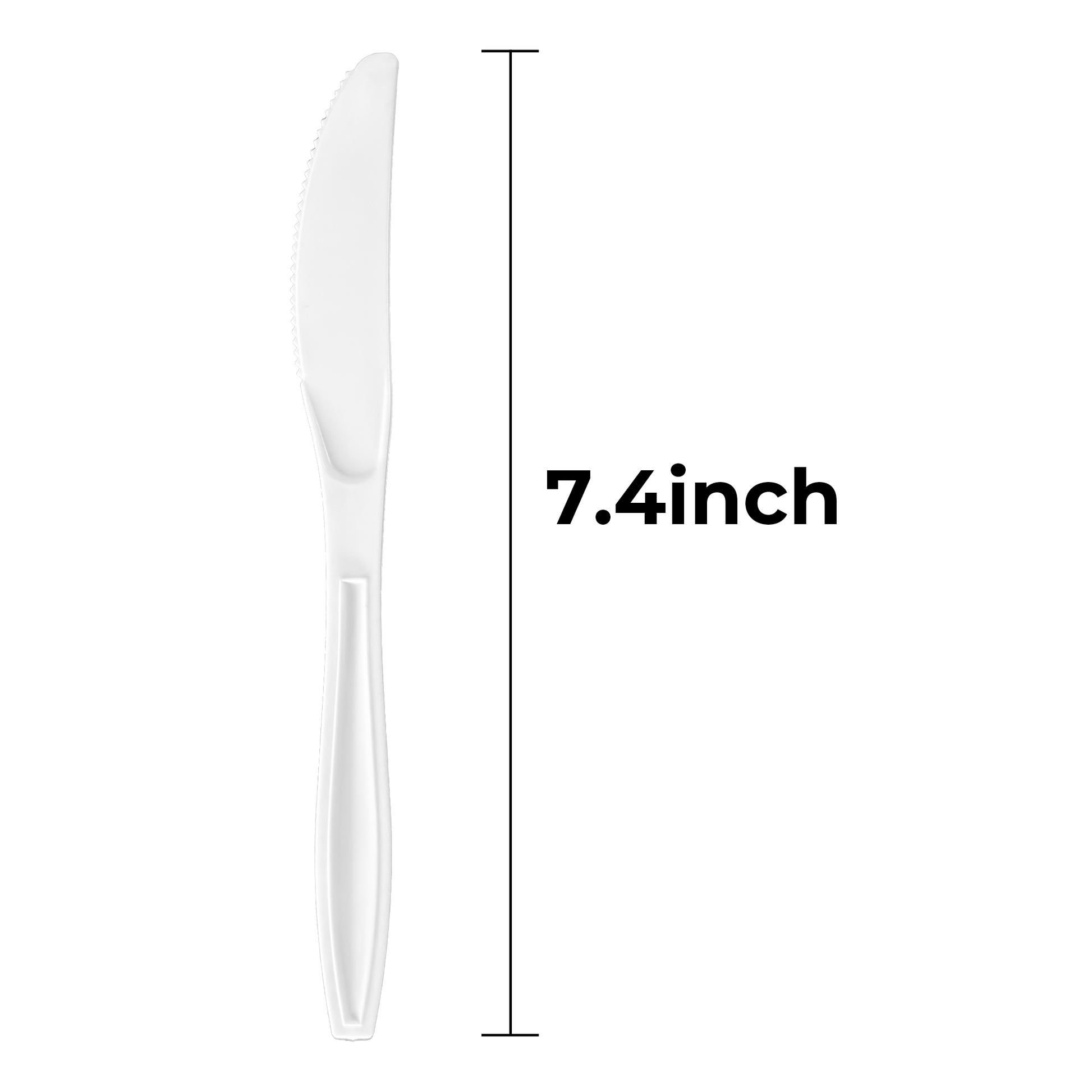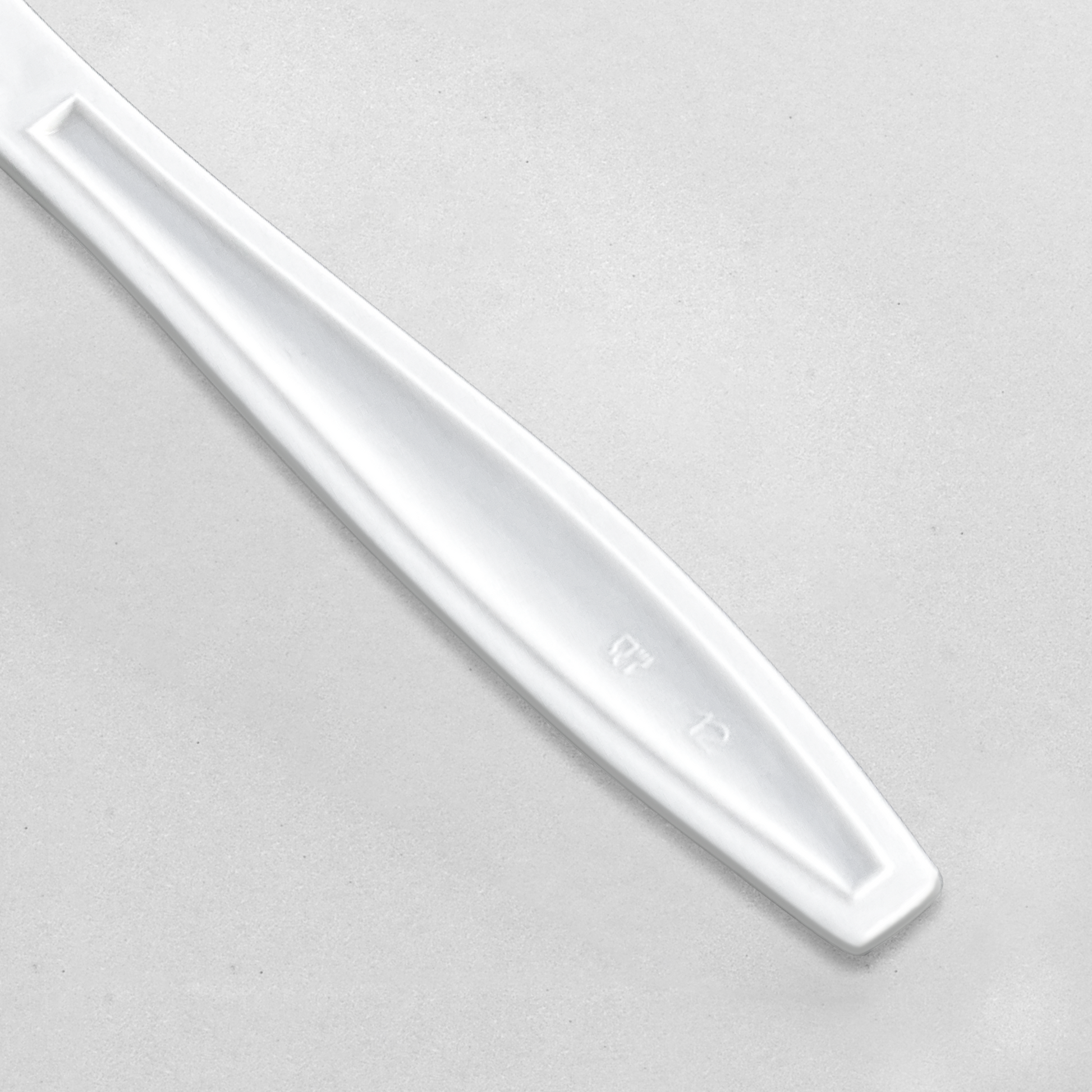 Biocean PS Plastic Heavy Weight Knives are crafted from high-impact polystyrene, offering exceptional rigidity and cutting strength. These heavy-duty disposable knives can easily handle meats, vegetables, and other hearty dishes without bending or breaking. Featuring a clean white finish, they provide a professional and polished look for restaurants, catering events, parties, and takeout services. A reliable choice for both casual and formal dining occasions.