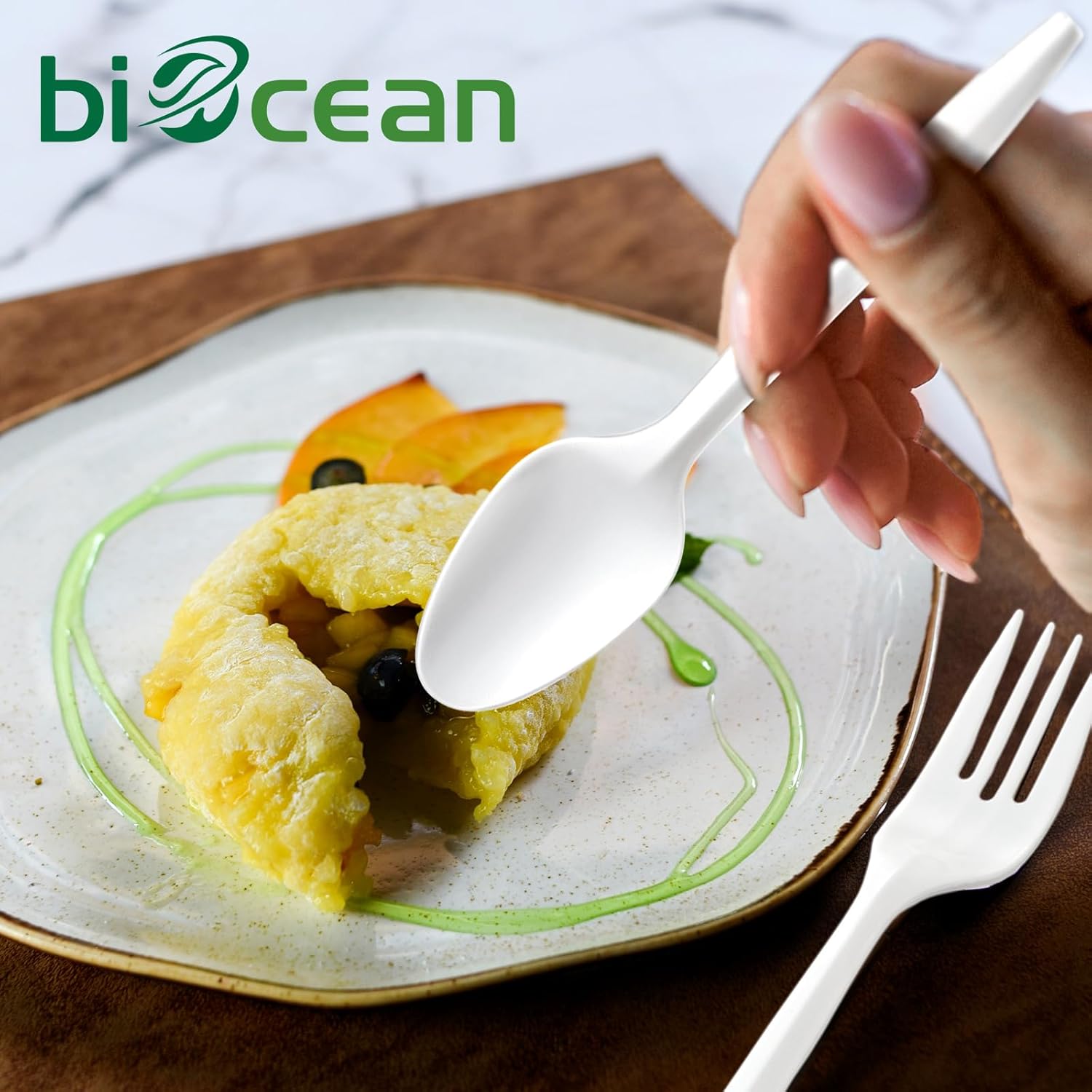 Biocean Medium Weight White PP Plastic Forks (2.5g) are an excellent choice for everyday dining, catering services, takeout, or office events. With their mediumweight design and clean white finish, these forks offer convenience and practicality for serving a variety of meals. Packaged by the case, they provide a cost-effective solution for restaurants, cafes, or any large-scale food service operation.