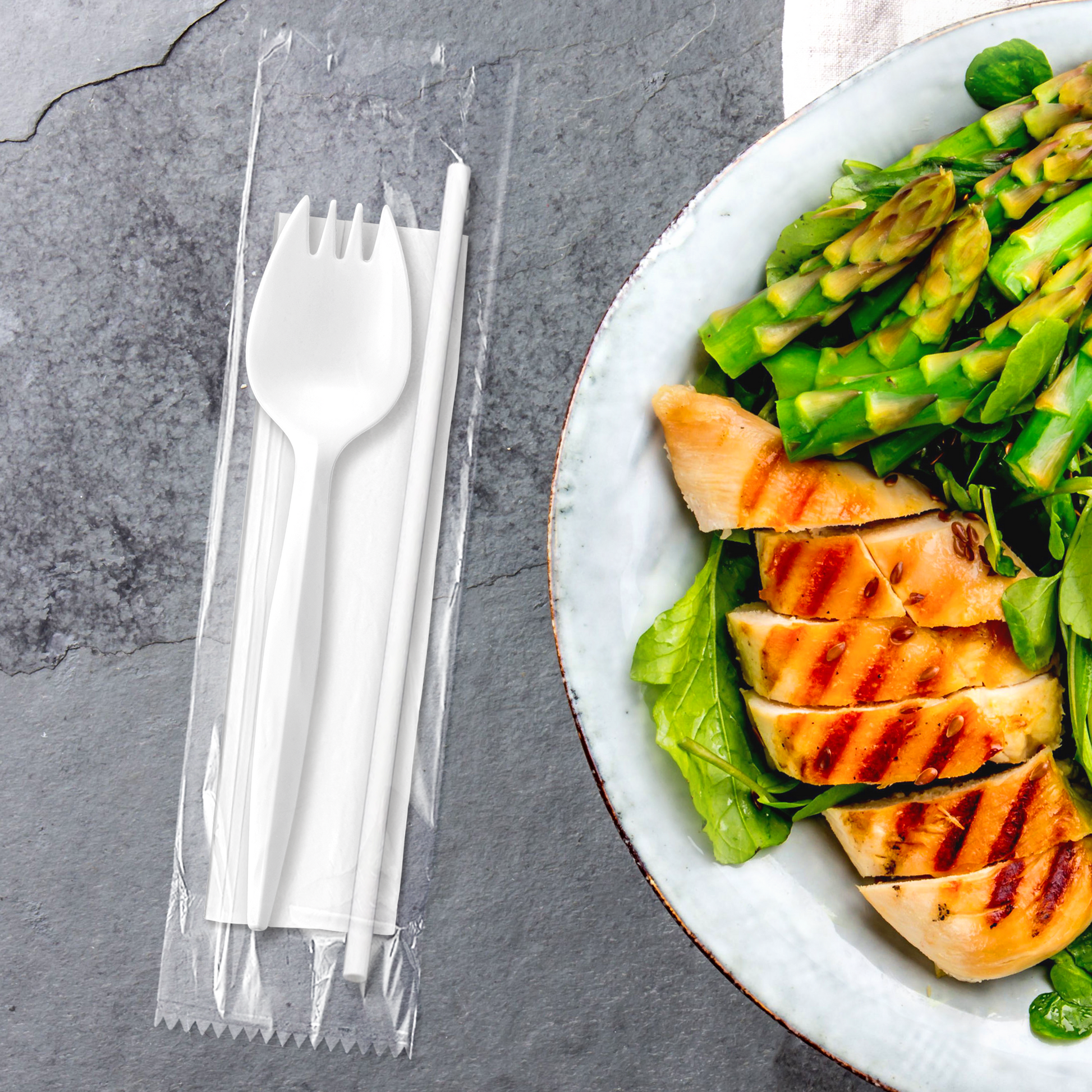 - Includes: Spork, Straw, 1-ply Napkin
