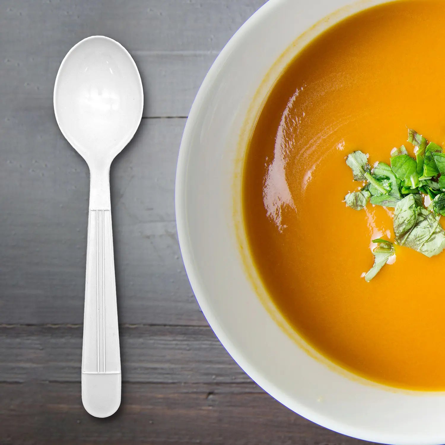Heavy Weight White PP Plastic Wrapped Soup Spoons - 1,000/Case