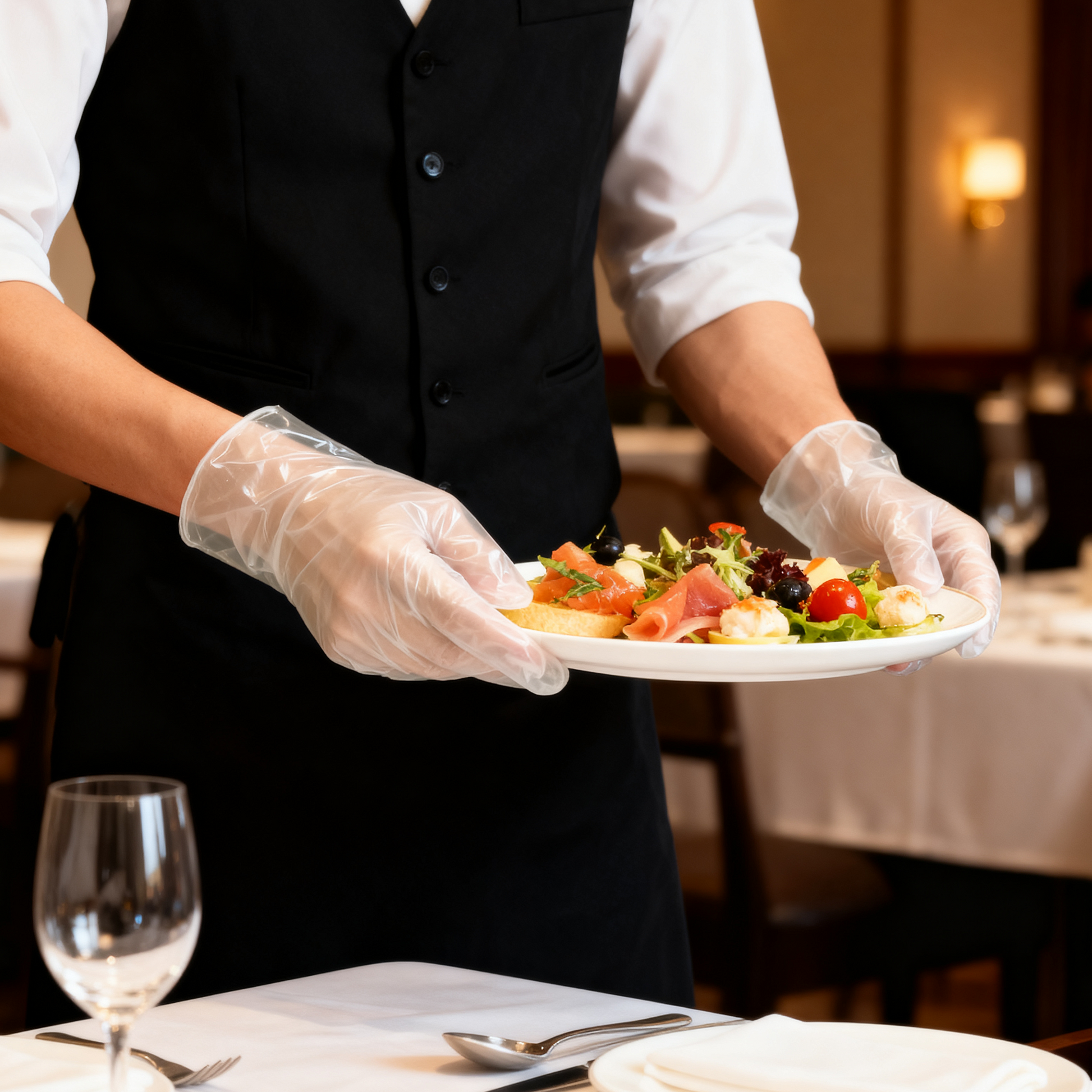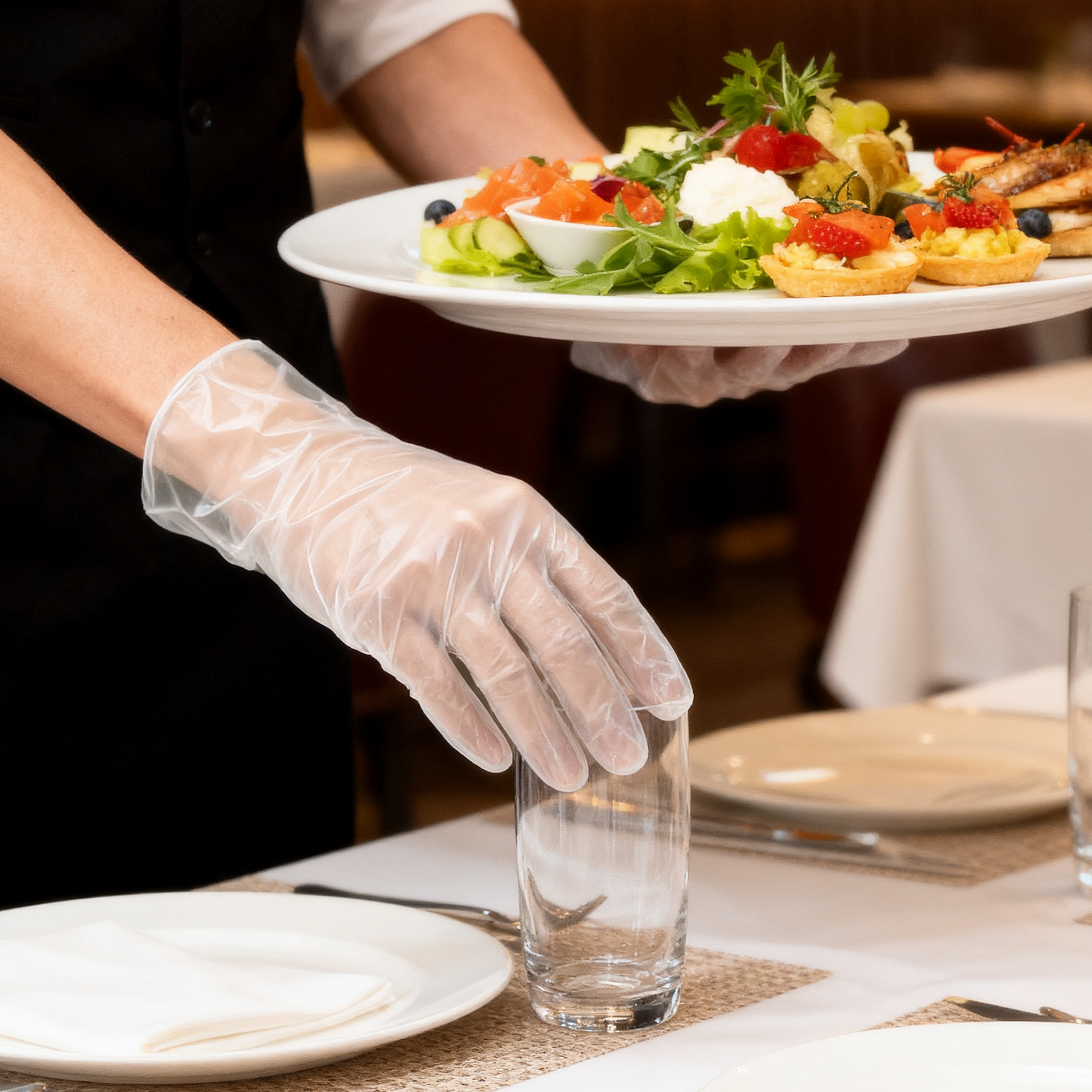 Biocean Powder-Free Clear Vinyl Gloves are the perfect choice for food handling and preparation in restaurants, catering, and takeout services. Made from durable, latex-free, and powder-free PVC material, they provide a comfortable and hygienic fit while preventing latex allergies. Their smooth surface ensures excellent touch sensitivity, making them ideal for handling disposable tableware and packaging. Designed for single use, these gloves help maintain cleanliness and safety in any food service environment. Available in M, L, and XL sizes for a perfect fit.