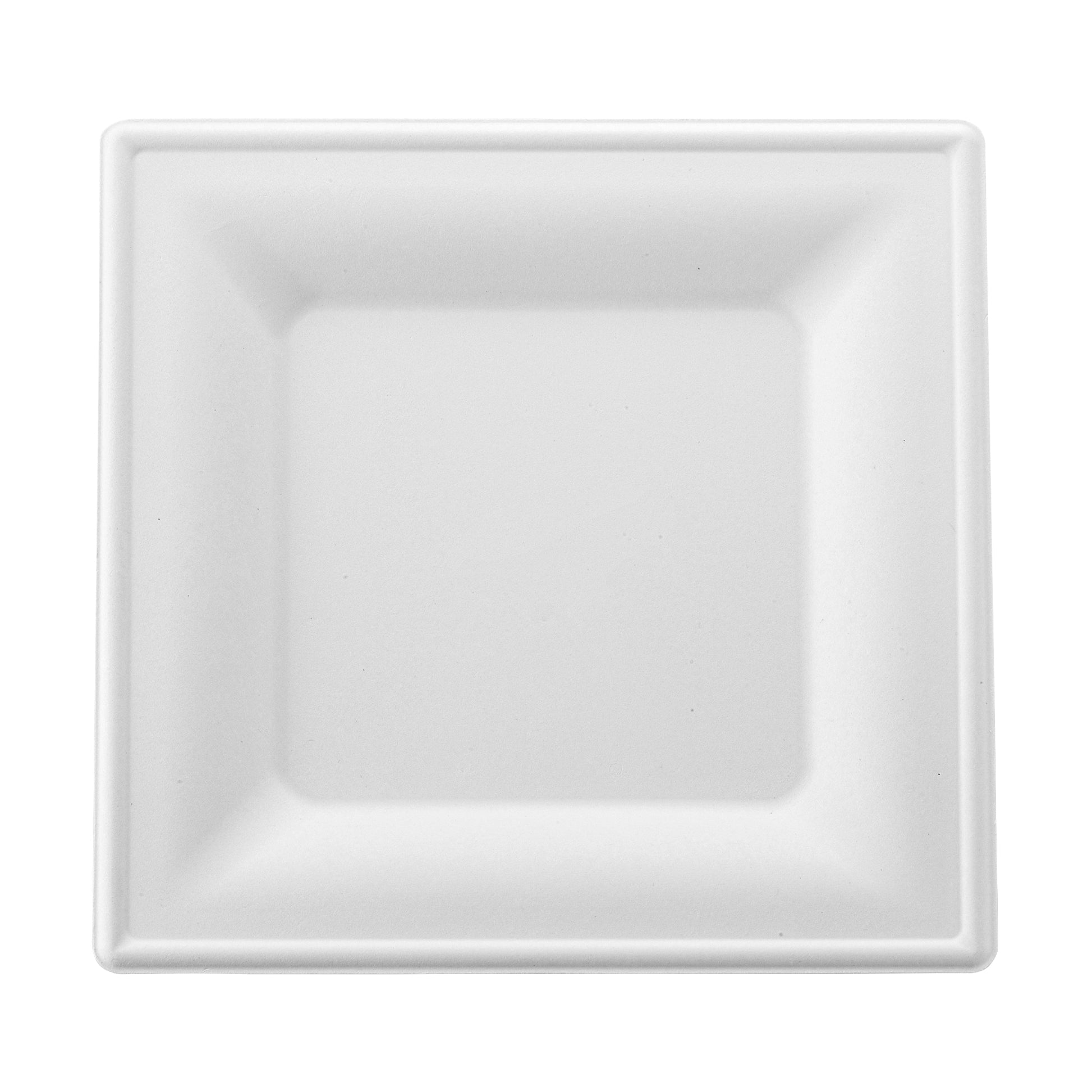 White Bagasse Eco-Friendly 8"×8" Square Plates - 500/Case