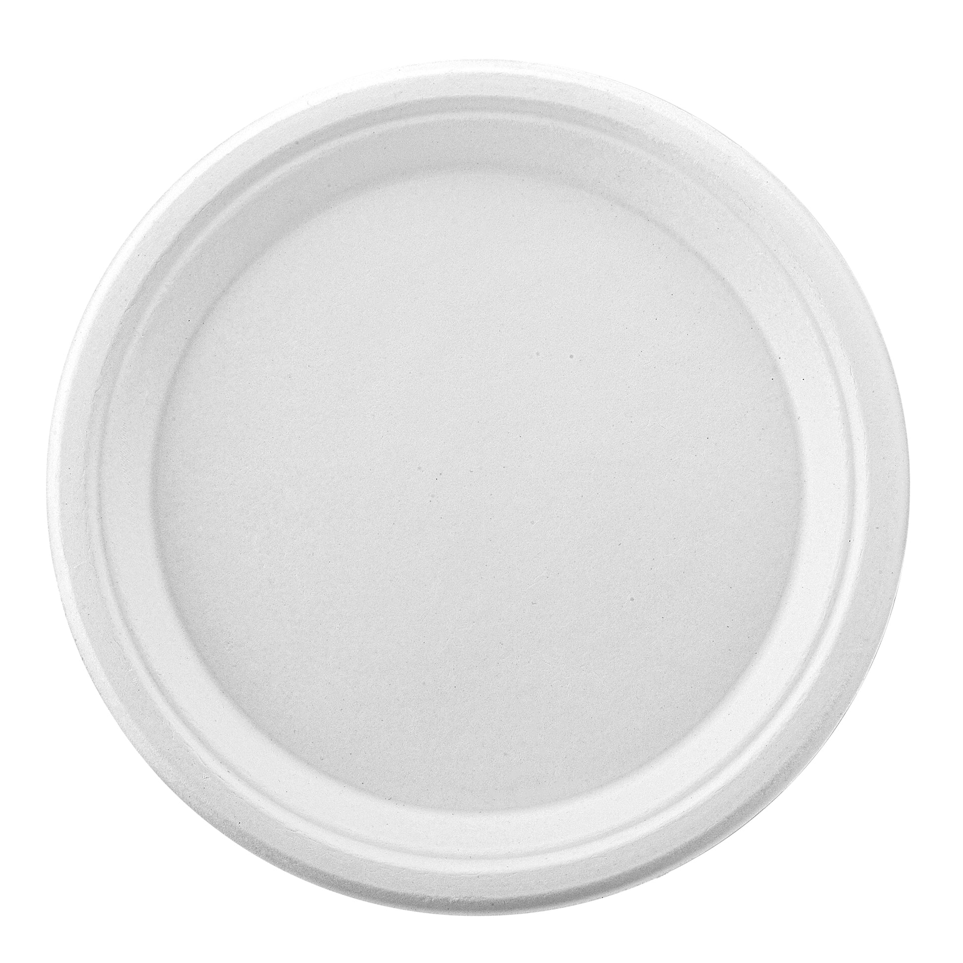 White Compostable Bagasse 6-Inch Round Plates - 1000/Case